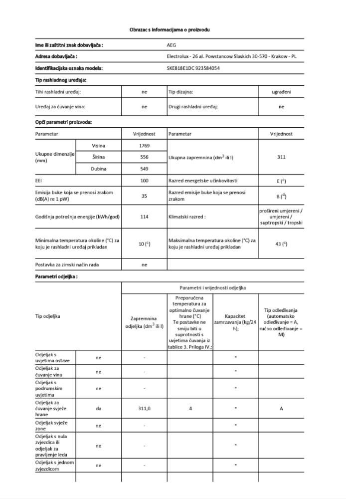 SoftClosing , DynamicAir tehnologija – ventilator s ravnomernim hlađenjem, Elektronske kontrole na dodir s LCD prikazom iza vrata, 4 velike staklene police + 1 prilagodljiva, Veliki odeljak za voće i povrće, flaše i visoke stvari s teleskopskim vođicama i pregradom za flaše