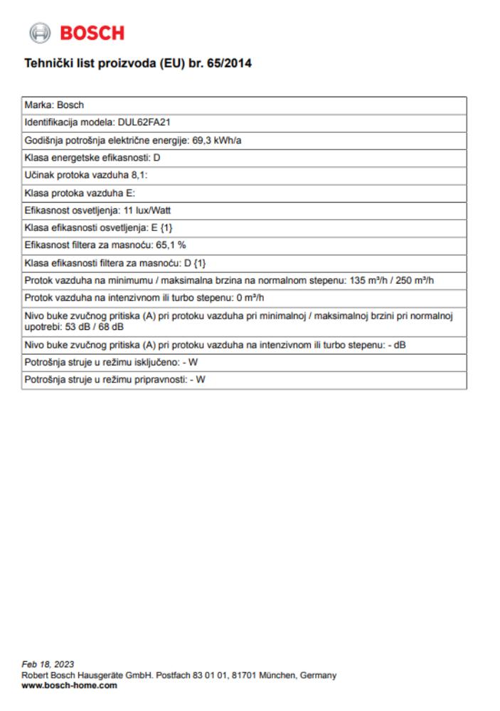 | Dimenzija (ŠxVxD) | 150 x 600 x 482 mm |