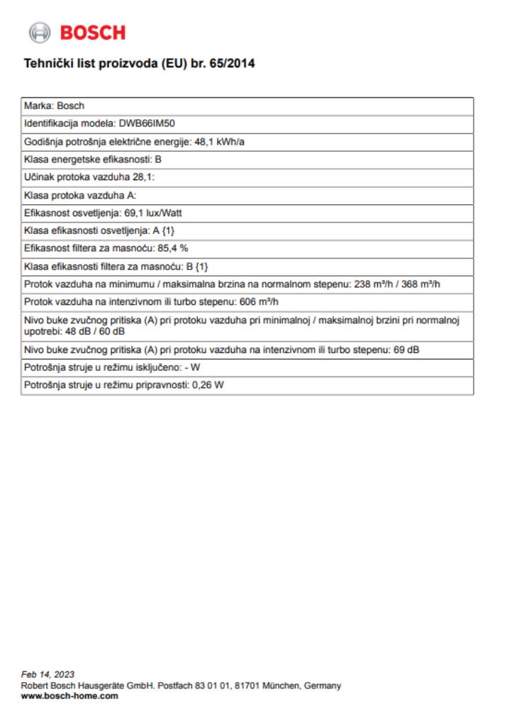 | Maksimalni protok vazduha kod odvodnog rada | 580 m³/h |