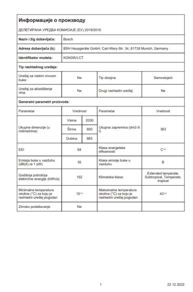| Jačina buke: | 35 dB(A) re 1 pW |
