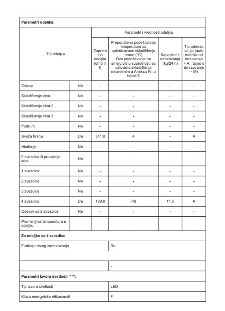 | Tip | Samostojeći frižider sa zamrzivačem |