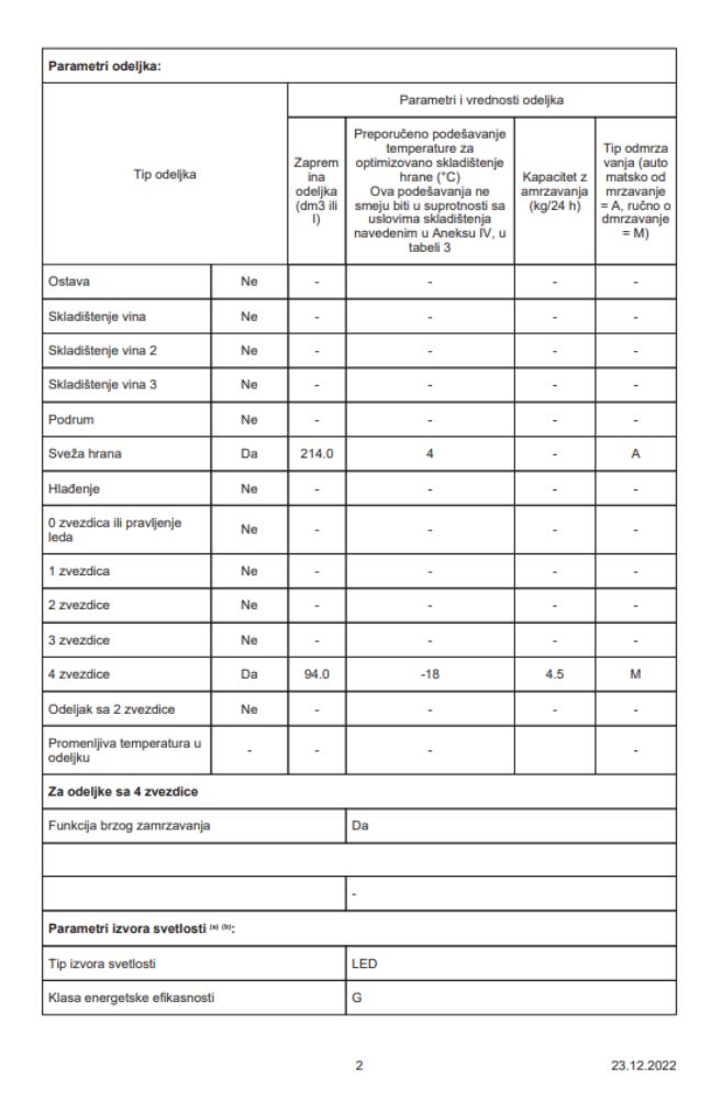 | Kapacitet zamrzavanja | 7 kg / 24 h |