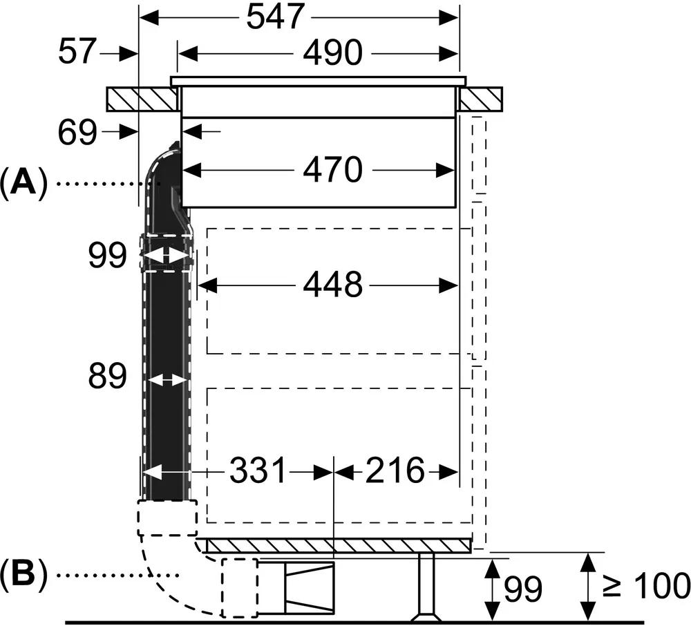 Osnovni komplet dodatnog pribora za konfiguracije odvoda putem cevi vaše ploče za kuvanje sa ugrađenim modulom za ventilaciju u kuhinjama u kojima je radna ploča dubine 60 cm ili više.