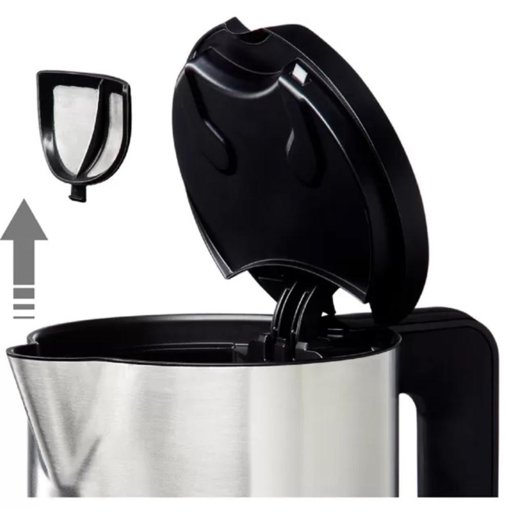| Opis | 360° podstavak Dno od nerđajućeg čelika - pokriveni grejači Uklonjiv filter za vodeni kamenac od nerđajućeg čelika Prikaz popunjenosti posude sa obe strane kućišta Otvaranje poklopca sa pritiskom na dugme Zaključavanje poklopca Zaštita od pregrevanja Easy storage: Namotavanje kabla |