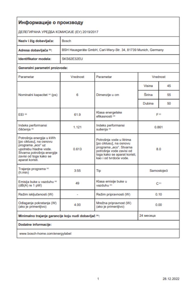 | Model | SKS62E32EU |