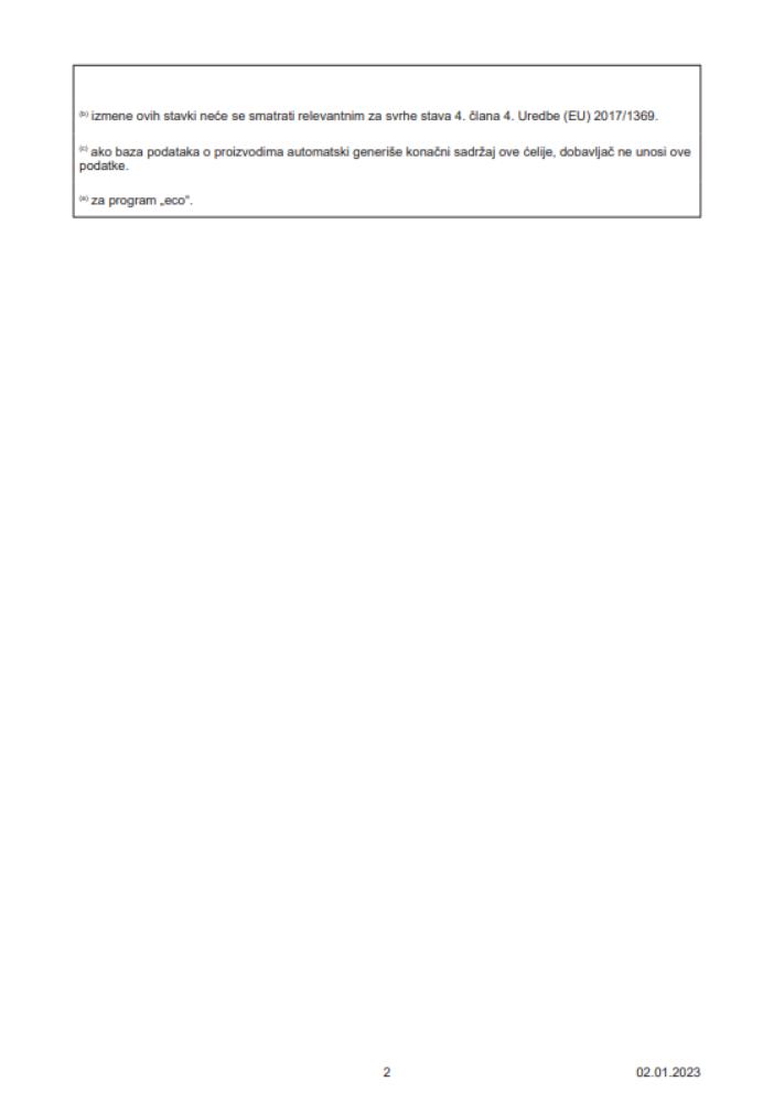 - Broj programa -5: Eco50°C,Auto45-65°C,Intenzivno70°C,Kratko65°C,Favourite
