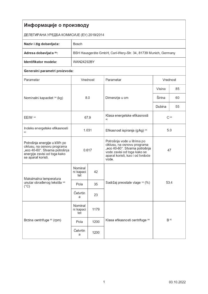Brzo/Mešano, dodatno ispiranje, Ekstra kratak 15'/30', Ispumpavanje/Centrifugiranje, Košulje/bluze, odgoda završetka programa, Outdoor, Pretpranje, Puh, SpeedPerfect, Start/Pauza sa mogućnošću kasnijeg dodavanja, Temperatura