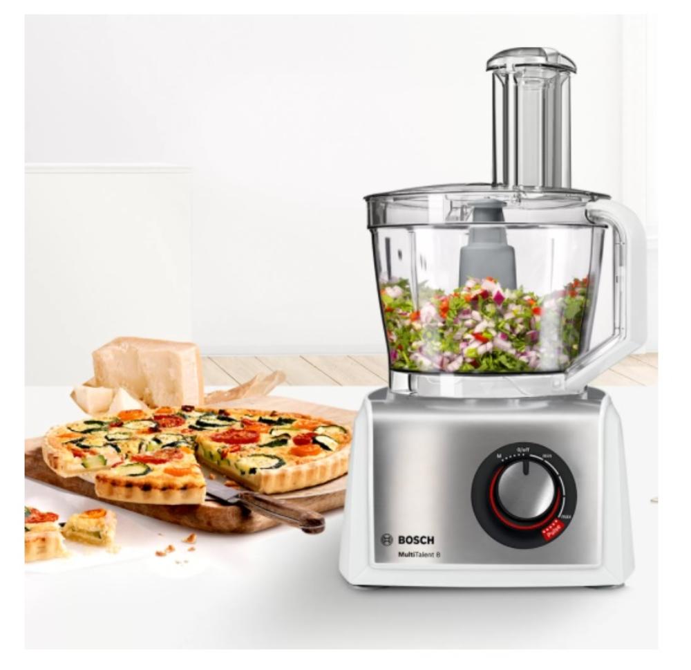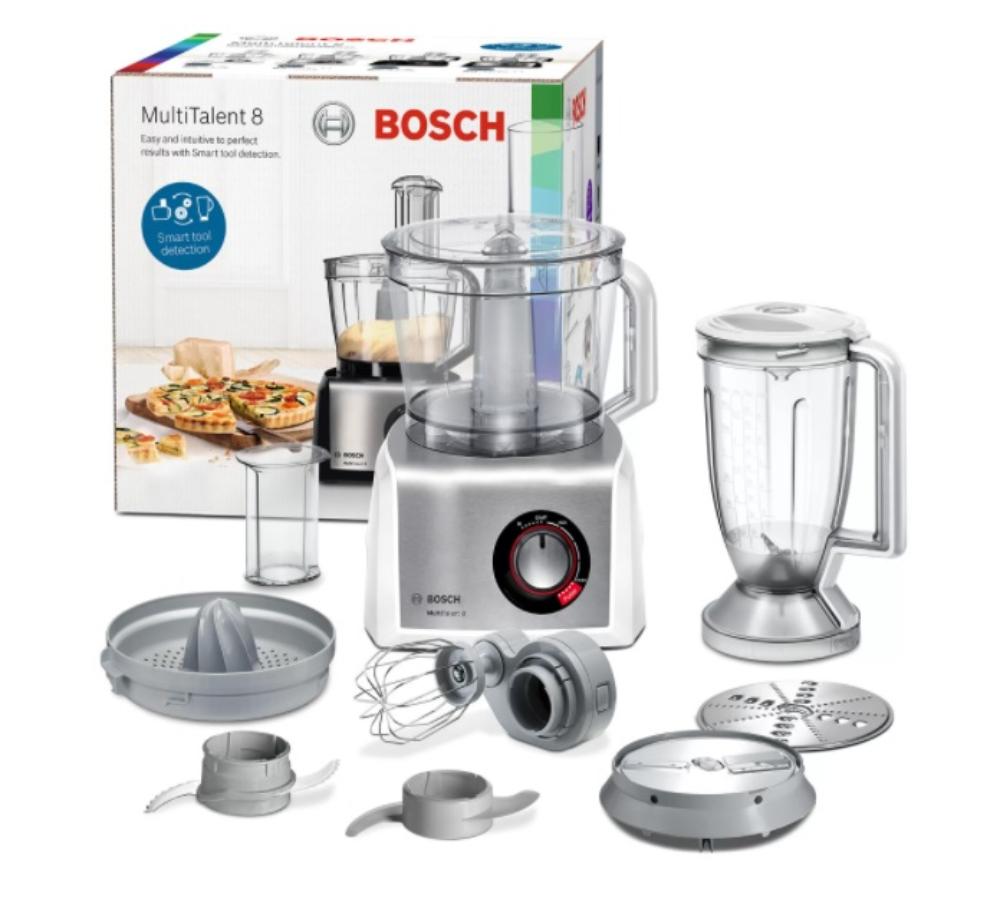 | Dodaci | Velika providna posuda za 750 g brašna + dodaci kao i poklopac sa otvor om za dodavanje sastojaka Plastičan bokal za mešanje Cjedilka za citruse za ceđenje svežih soka Ploča za rezanje Ploča za struganje Nosač ploča Plastični nastavak za gnječenje Mutilica od nerđajućeg čelika za šlag, belenca i testa |