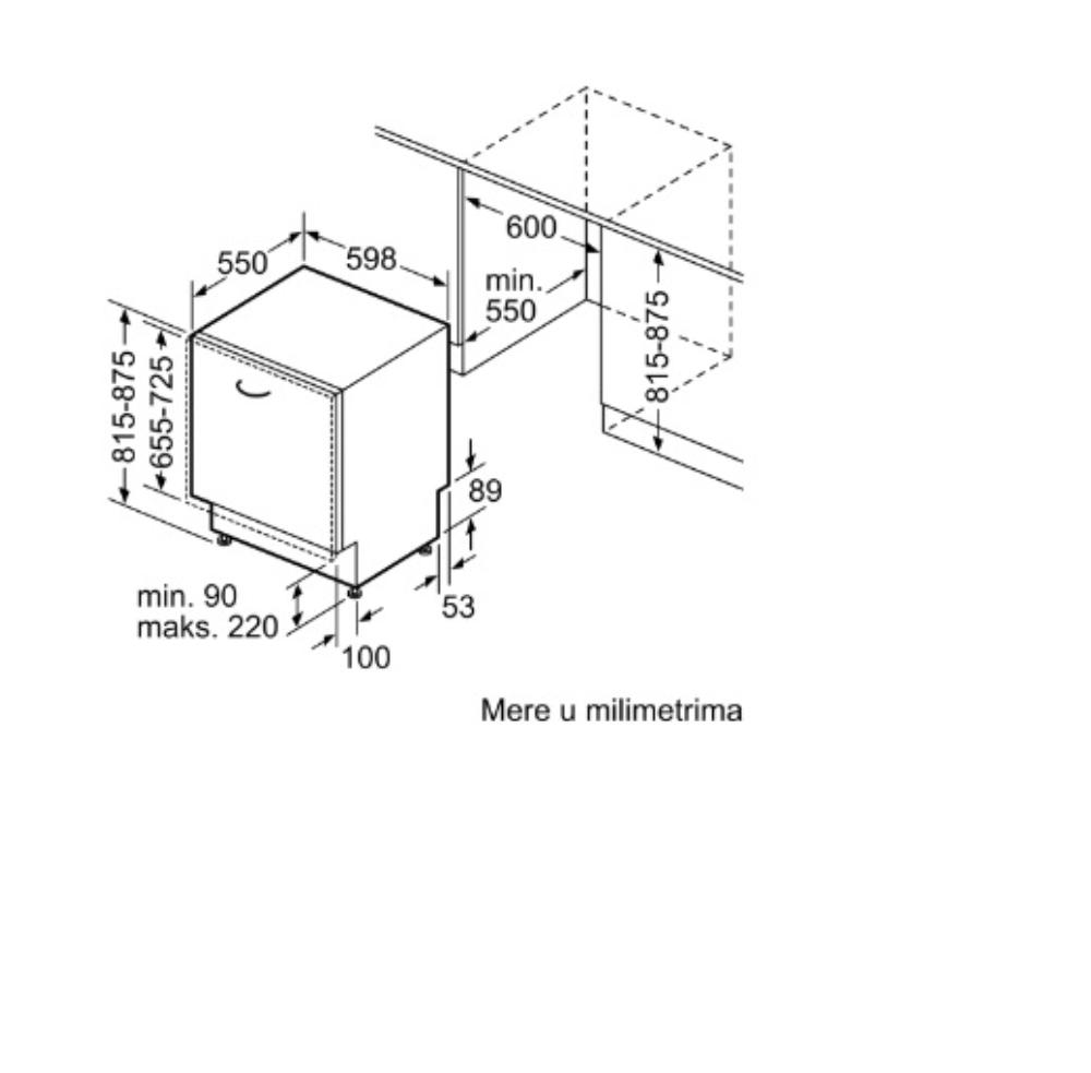| Dimenzije za ugradnju: | Minimalna visina za montažu 815 mm Maksimalna visina za montažu 875 mm Minimalna širina za montažu 600 mm Maksimalna širina za montažu 608 mm Dubina za montažu 550 mm |