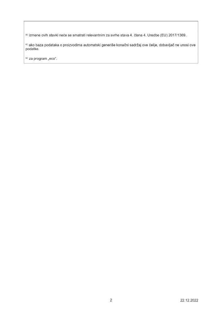 | Temperature pranja | Maksimalna: 70°C Minimalna: 45°C |