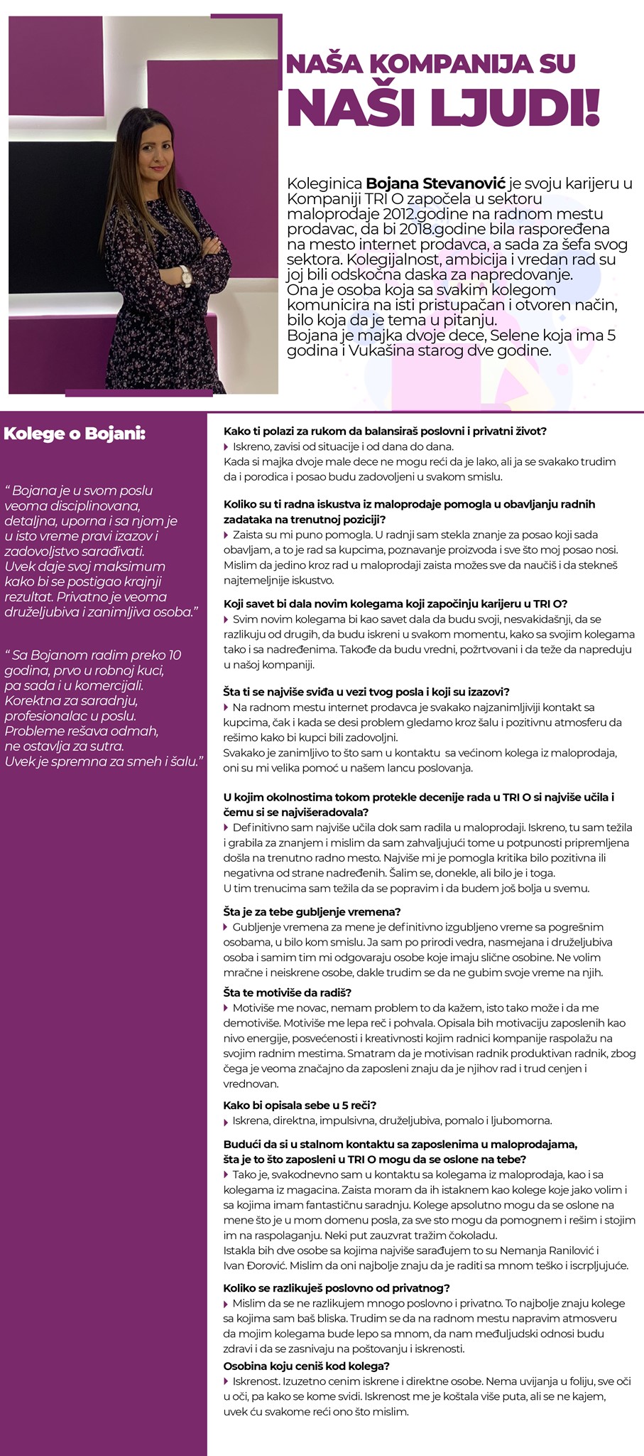 Tri O je prodična kompanija koja se trudi da se i zaposleni osećaju kao deo velike porodice!
