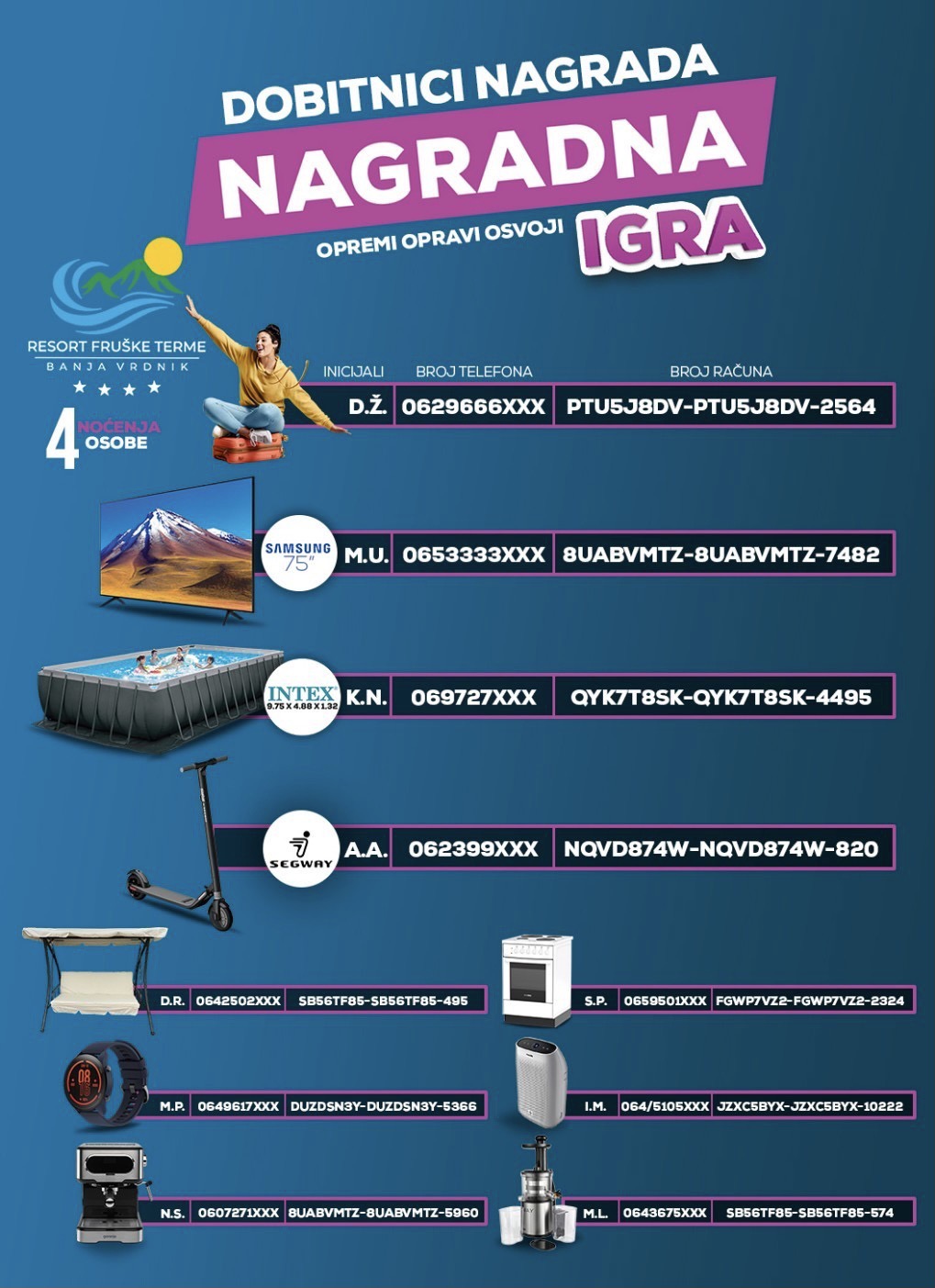 ponedeljak, 04. jul 2022. DOBITNICI NAGRADNE IGRE "OPREMI OPRAVI OSVOJI" Napišite komentar Novi komentar