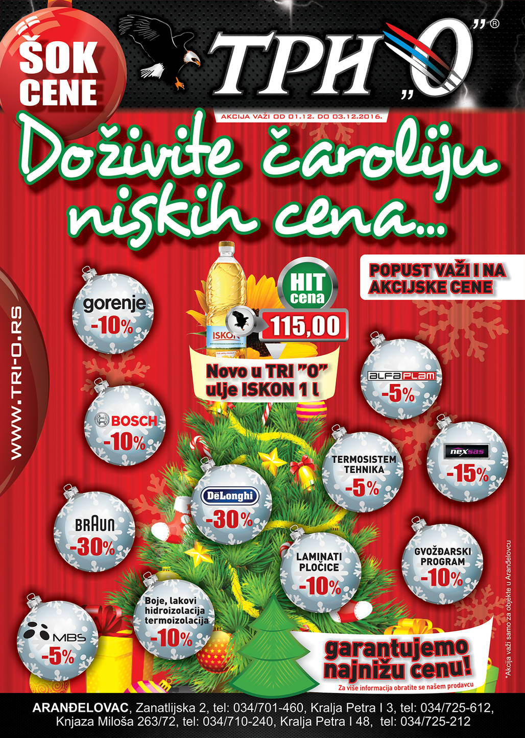 ranije!Od01. do 03. decembra zakoračite u čarobni svet poklona i popusta do 30% u SVIM TRI "O" prodavnicama u