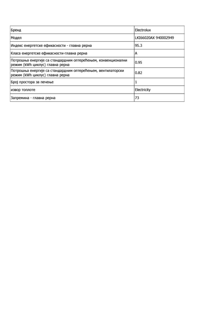 | Zapremina rerne | 73 l |