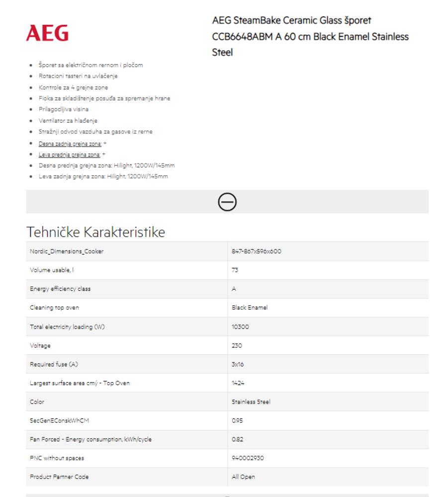 | Tip | Samostojeći šporet |