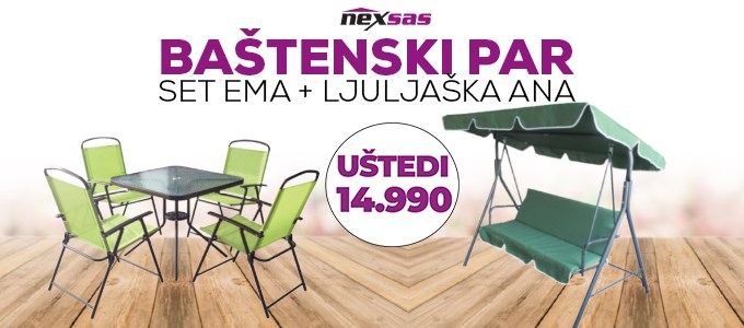 Od sad pa do 10.maja kod nas možete pronaći baštenski par sto i 4 stolice EMA i ljuljašku ANU po ceni od 31.990 dinara!