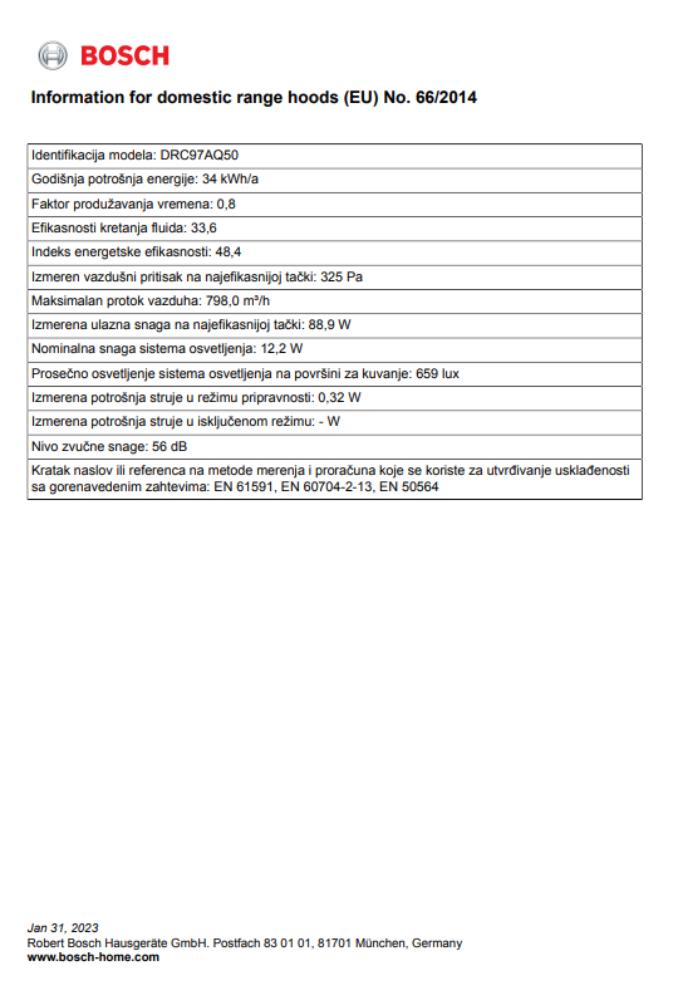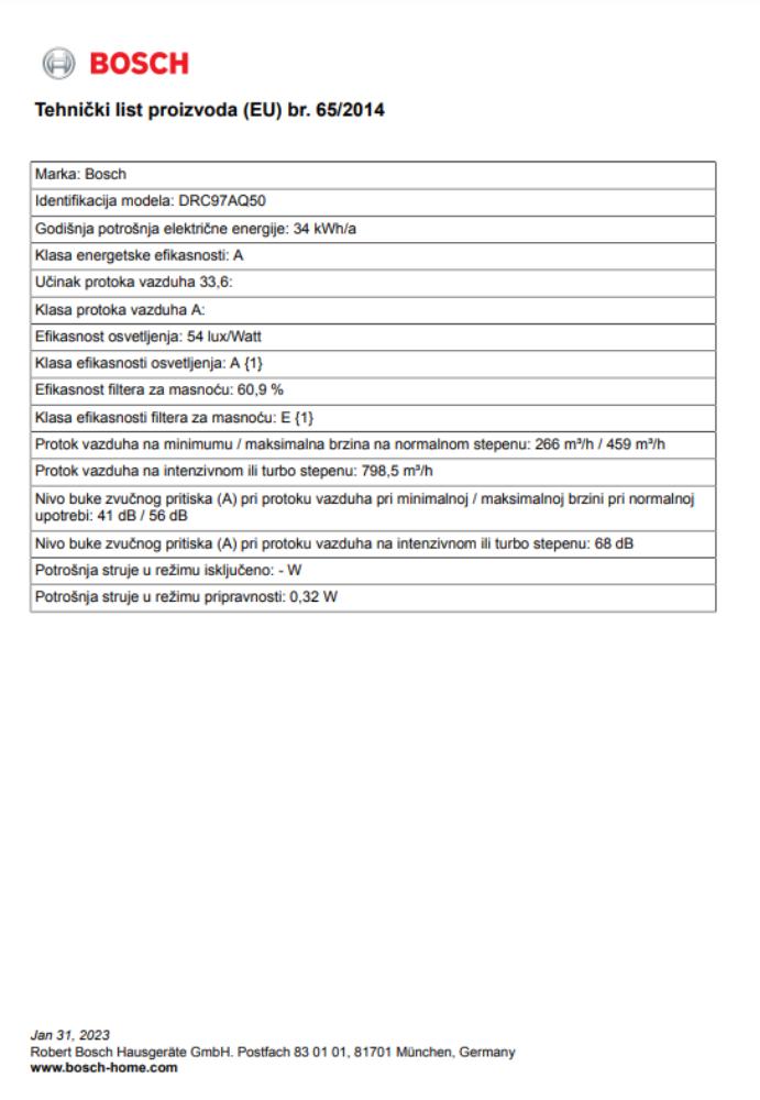 | Maksimalni protok vazduha kod odvodnog rada | 798m3/h |