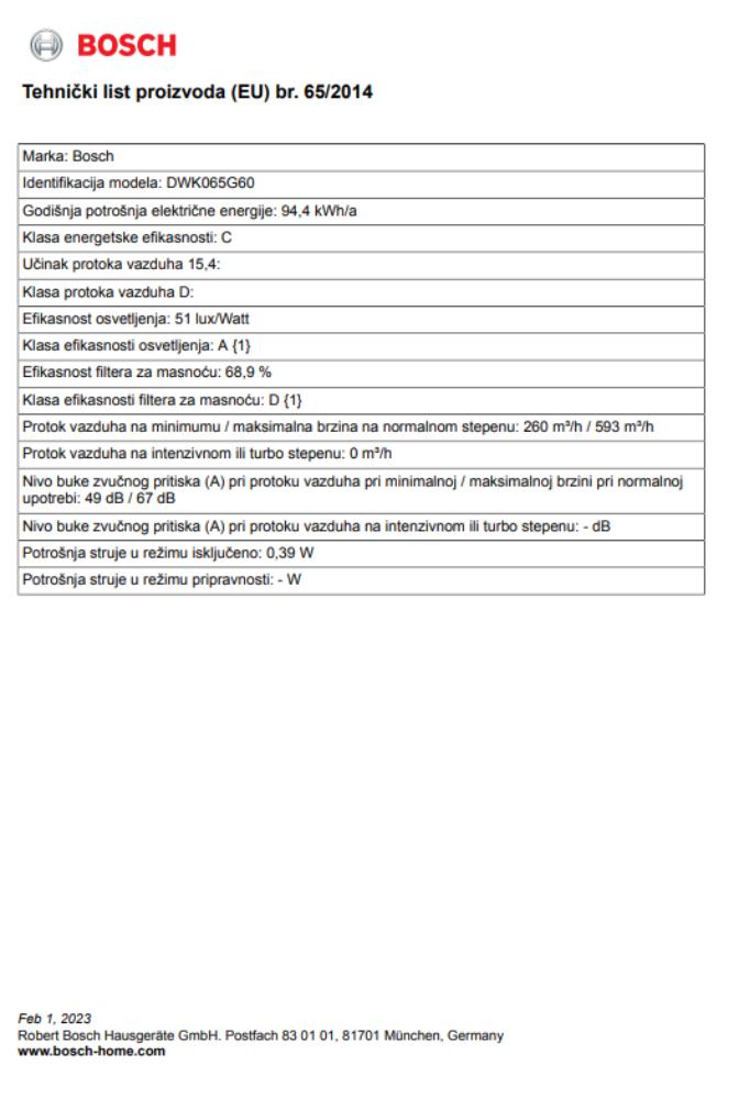 | Maksimalni protok vazduha kod odvodnog rada | 580 m³/h |