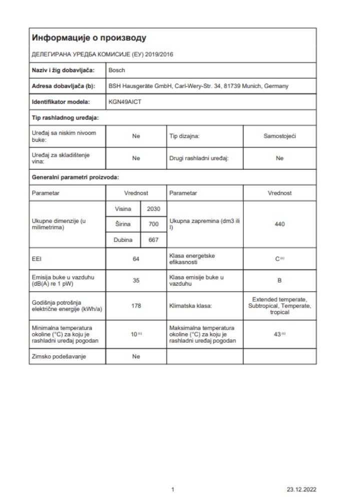 | Funkcije | Sistem za održavanje svežine VitaFresh XXL. Home Connect. LED osvetljenje. PerfectFit. Odvojeno elektronsko regulisanje temperature sa LED prikazom. Odvojeno upravljanje temperature u rashladnom i zamrzivačkom delu. Super hlađenje. Optički i akustički sistem upozoravanja kod otvorenih vrata. Aktivni sigurnosni sistem. Rashladni deo: Multi Airflow-System Br. površina za odlaganje od sigurnosnog stakla: 5 (podesive po visini: 3), od toga 1 deljiva staklena polica Nosač za flaše Br. velikih površina za odlaganje na vratima: 1, broj malih površina za odlaganje: 3 Svežina: VitaFresh fioka sa podešavanjem vlažnosti - voće i povrće ostaje duže vremena sveže, VitaFresh 0°C fioka - ribe i meso ostaje duže vreme sveže Deo za zamrzavanje Broj providnih fioka za zamrzavanje: 3 |