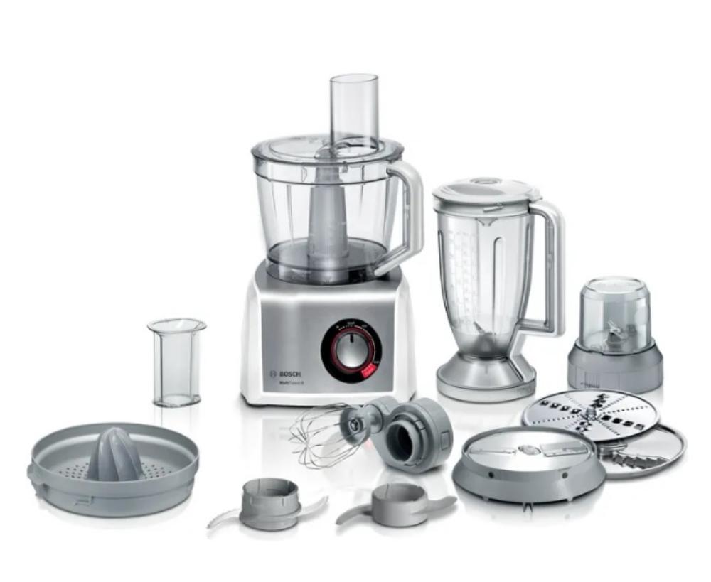 Multipraktik Multitalent 8, 1250 W, Bela, Posuda 3,9 L, Blender, Mutilica, Cedilo, 3 poče za rezanje, Univerzalni rezač