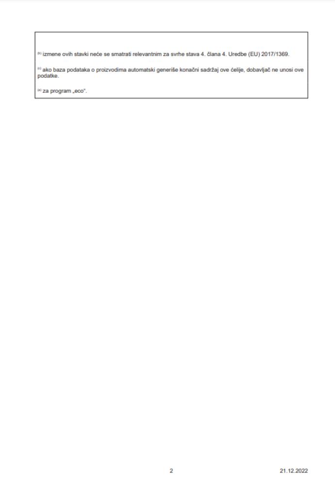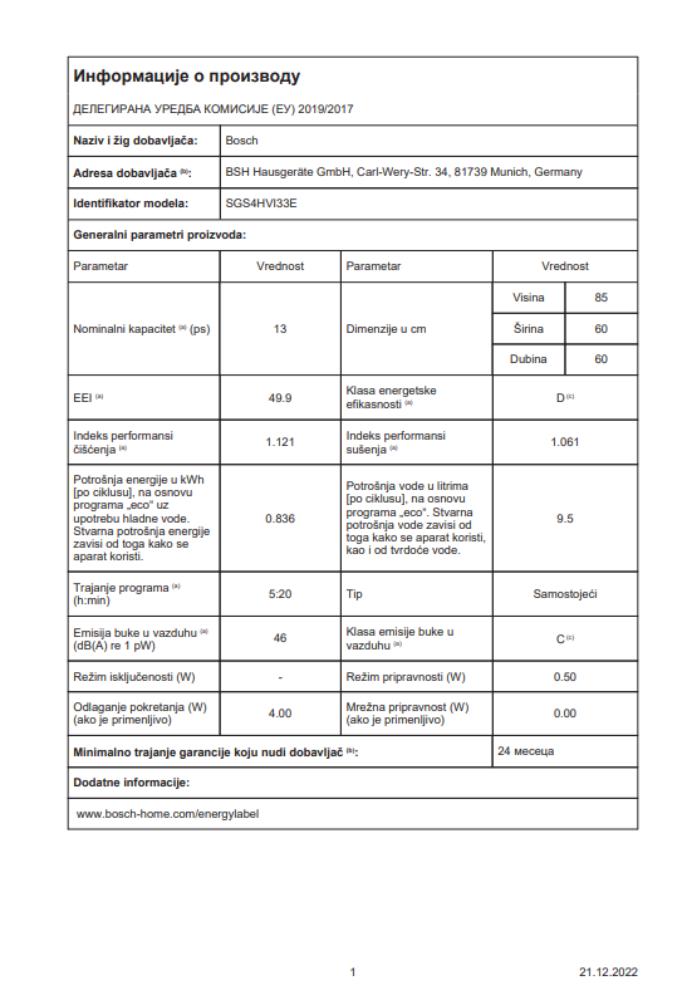 | Potrošnja vode | 84 kWh / 9.5 l |