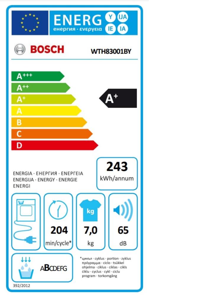 | Funkcije | Ciklus protiv gužvanja 120 min posle završenog programa - TouchControl dugmad EasyClean filter: jednostavno čišćenje zaštitnog filtera za kondenzator AutoDry tehnologija Potpuno elektronsko upravljanje svih programa jednim regulatorom LED-display za prikaz toka programa, pretpodešavanje vremena uključenja do 24 h, prikaz preostalog vremena, dodatnih funkcija Sensitive Drying System: Galvaniziranj bubanj sa asimetričnimi prečkami AntiVibration Design: tiša i stabilnija mašina Indikacija za pun rezervoar kondenzata Indikacija za čišćenje filtera Zaključavanje opcija pred decom Zvučni signal na kraju programa Plastična vrata, bela Udobno zaključavanje Otvaranje sa strane, udesno Metalna kvaka na vratima |