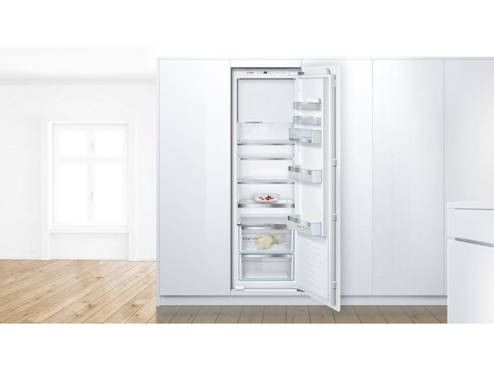 | Funkcije i karakteristike | Broj pregrada za odlaganje od sigurnosnog stakla: 5 (4 podesive po visini) VitaFresh plus fioka sa teleskopskim izvlačenjem za voće i povrće 1 VarioShelf deljiva staklena polica 1 EasyAccess polica na izvlačenje Broj polica za odlaganje u vratima: 5 Pregrada za maslac ili sir 3 posude za jaja Posuda za led Držač za boce LED osvetljenje |