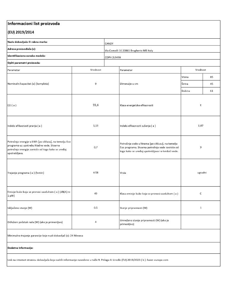 Dodatno ispiranje / osvežavanje, za sudove koji će biti prani kasnije ili dodatno ispiranje na 45°C