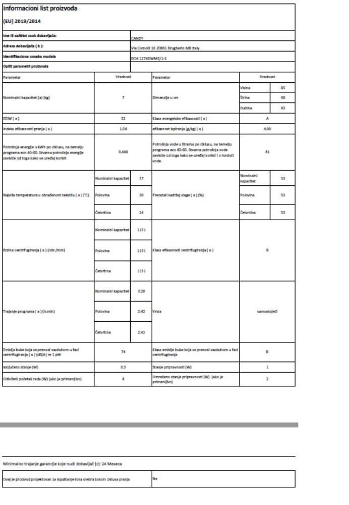 | Senzor težine veša | KG Detector - automatsko smanjenje potrošnje struje, vode i vremena pranja prema stavljenoj količini veša od 1 kg do punog kapaciteta |