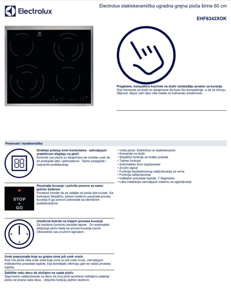 - "Stop&Go" funkcija za jednostavno pauziranje procesa kuvanja