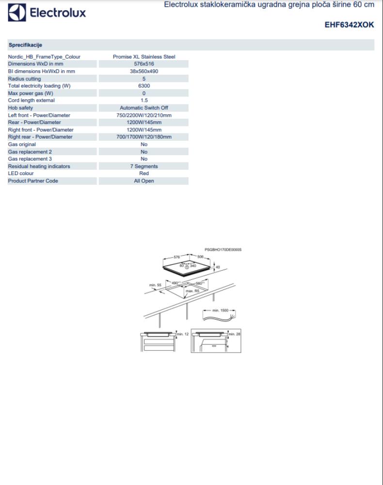 - ugradne dimenzije (Š x V): 56 cm x 49 cm