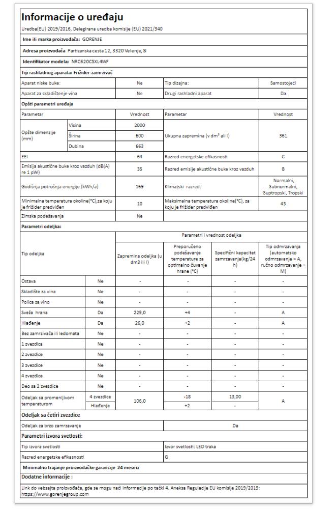 | Ostalo | NoFrost Plus IonAir technology sa Multiflow 360° ConvertActive: Pretvorite zamrzivač u frižider AdaptTech: Inteligentni sistem prilagođavanja korisnikovim navikama Prekidač za brzo zamrzavanje Brzo hlađenje SuperCool EcoMode: Štedljivi program Elektronsko upravljanje na vratima Alarm za predugo otvorena vrata Indikator temperature: Digitalni pokazatelj temperature frižidera i zamrzivača Upozoravajući zvučni i svetlosni signal za previsoku temperaturu u frižideru: beli signal |