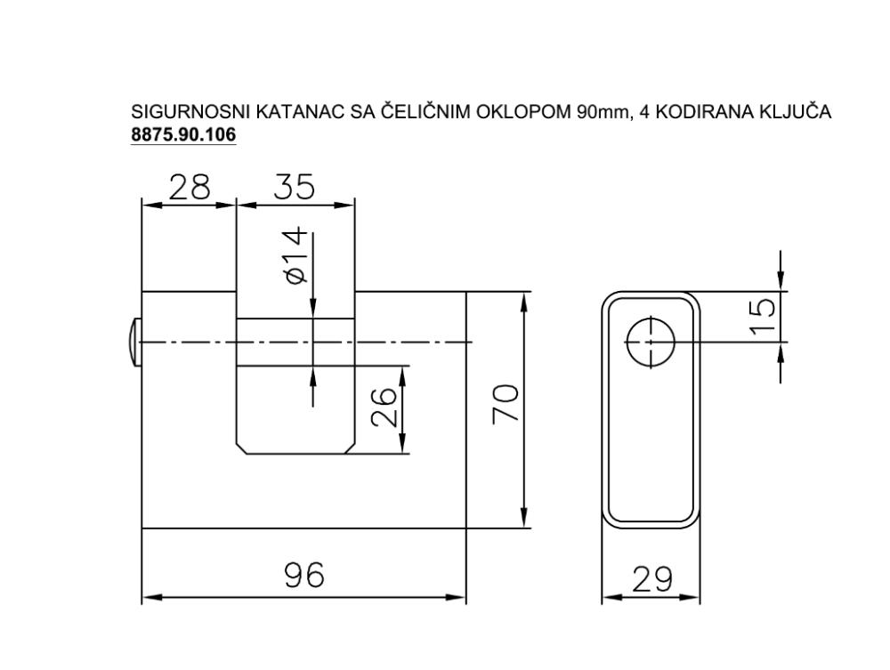 | Opis | SIGURNOSNI KATANAC 90MM SA ČELIČNIM OKLOPOM I 4 KODIRANA KLJUČA |