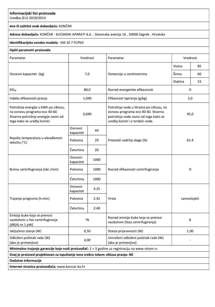 | Kapacitet pranja |