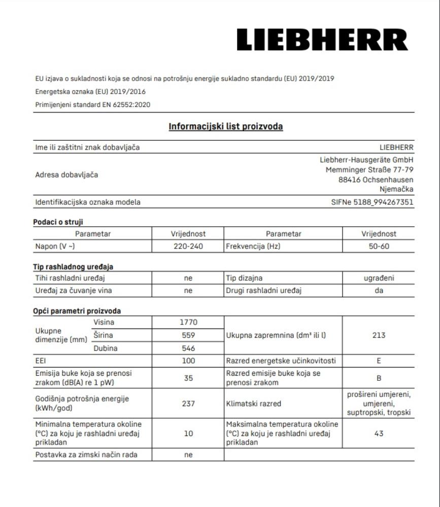 Proizvodnja kockica leda / 24h (kg) 0,8