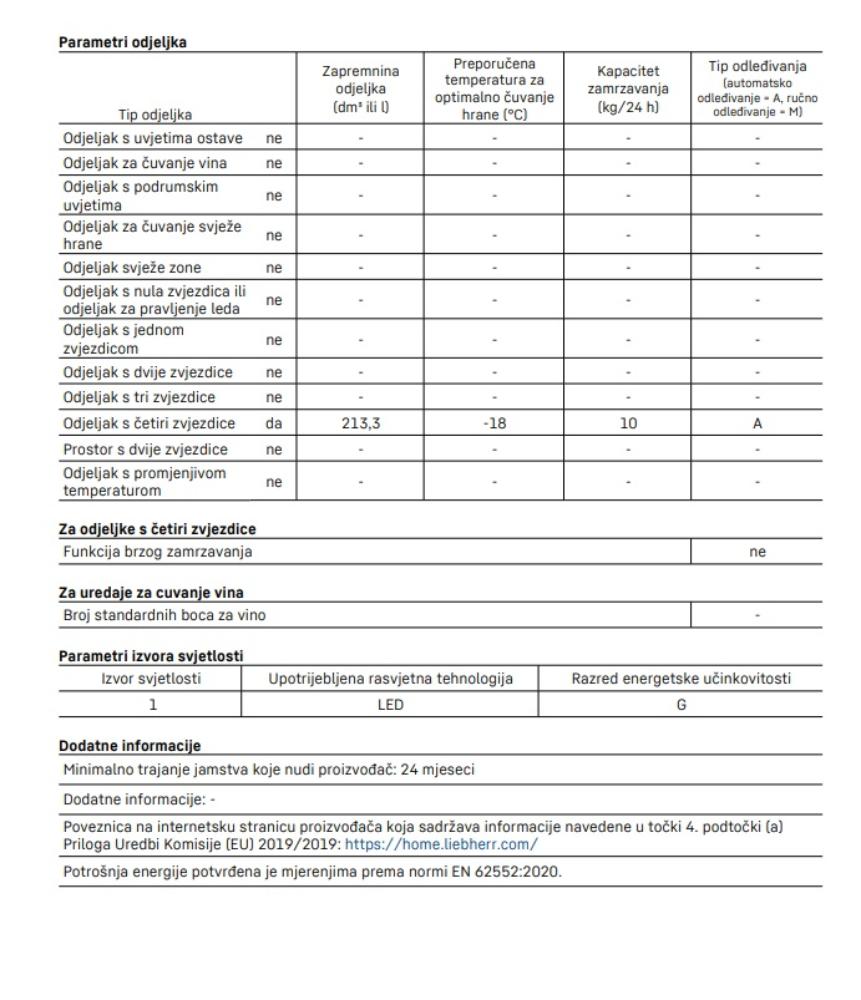 Kapacitet zamrzavanja u 24 h (kg) 10