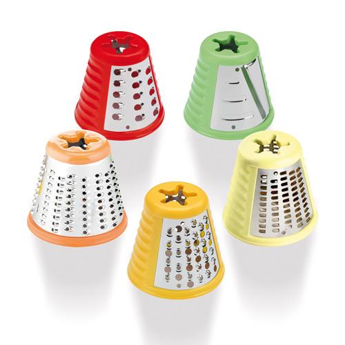 Zbog njegovih 5 integrisanih konusnih dodataka, Fresh Express + omogućava vam da rendate, sečete na kriške, iseckate ili rebrasto naseckate povrće, voće, sir ili čokoladu direktno na tanjir, spremno za posluživanje! Dodaci za rendanje i seckanje su različitih boja što će vam pomoći da na prvi pogled izaberete onu koja vam treba a i dodaju boje vašoj kuhinji. Osim toga, Fresh Express + ima veliki otvor za ubacivanje namirnica što znači da više ne morate unapred seći povrće!