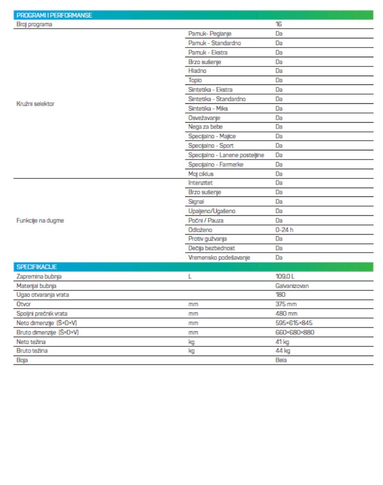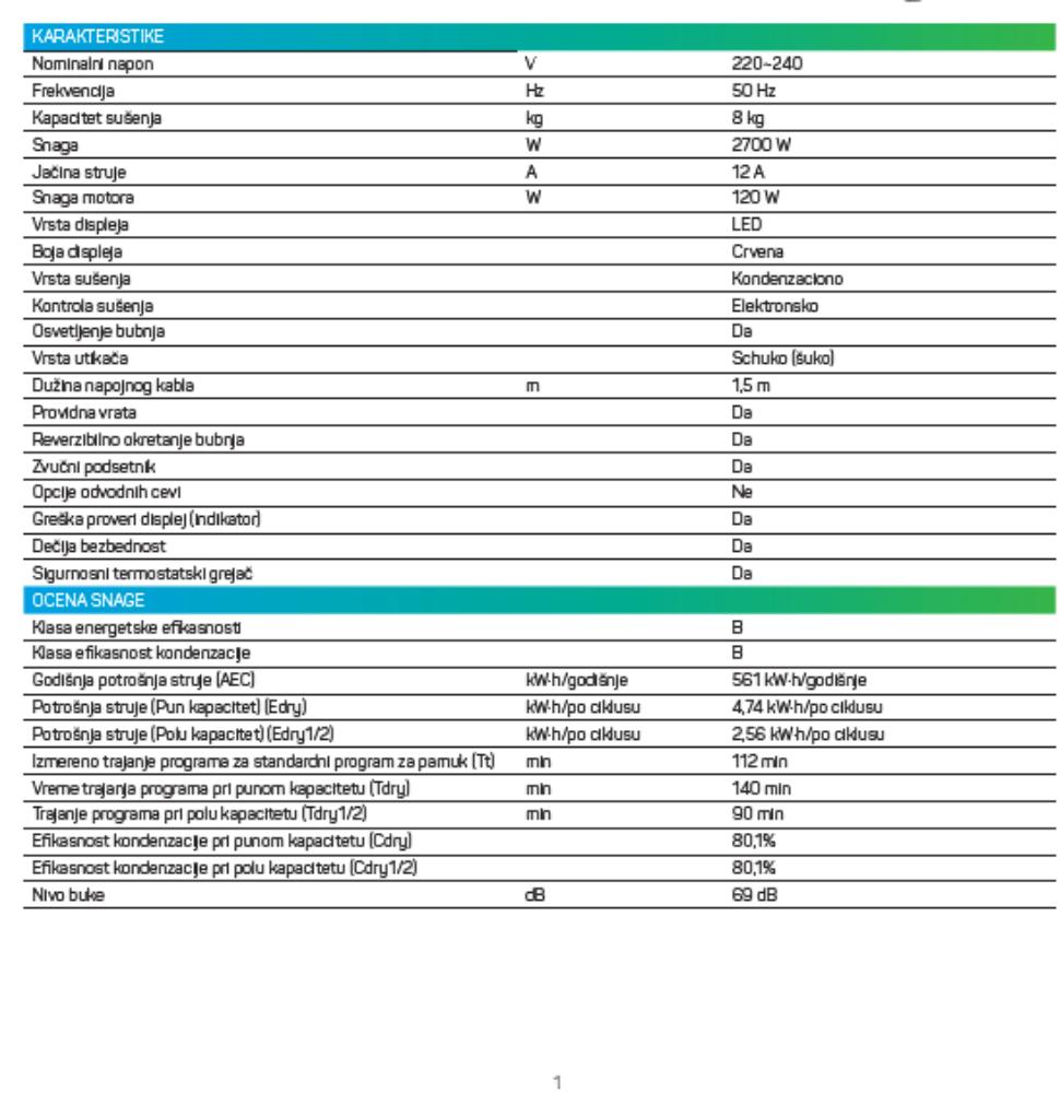 | Kapacitet bubnja (kg) | 8 kg |