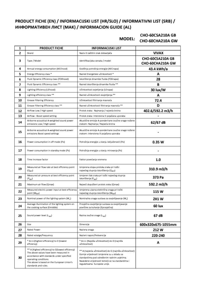 Minimalna / Maksimalni nivo buke: 62 dB / 67 dB,