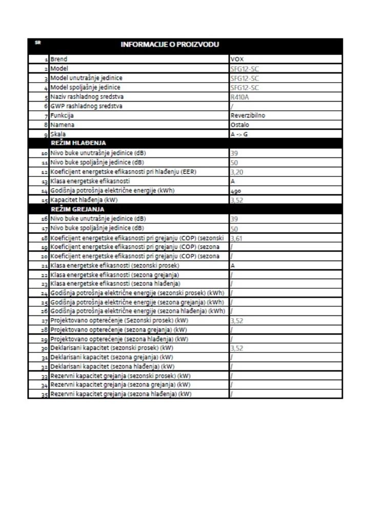 | Opseg hladjenja i grejanja |