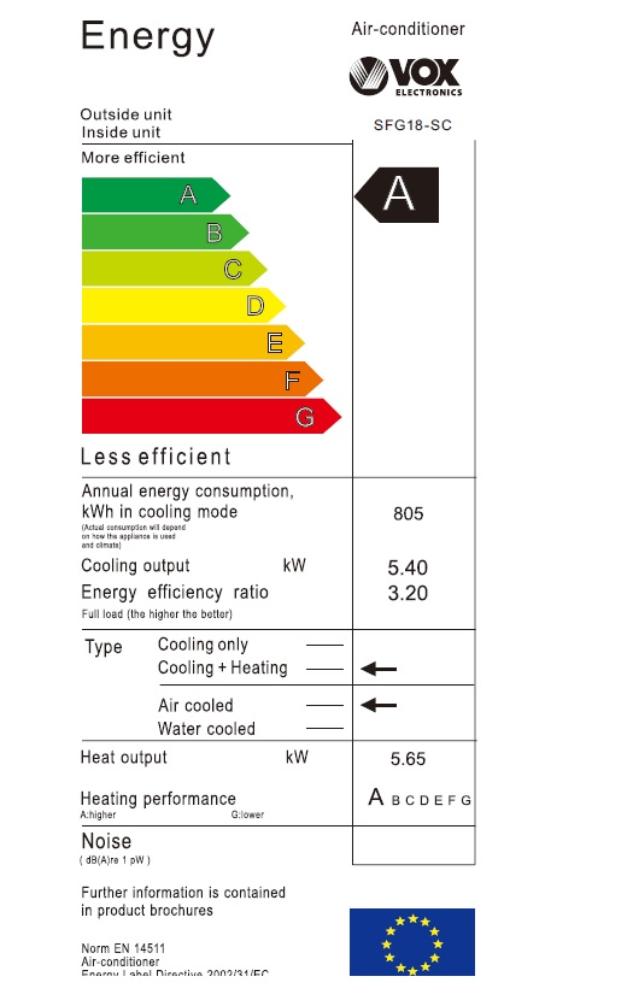 | Godišnja potrošnja električne energije | Potrošnja struje pri hlađenju: 1690 W Potrošnja struje pri grejanju: 1570 W |
