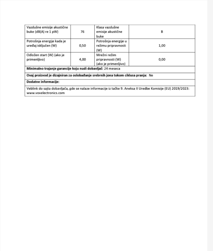 | Godišnja potrošnja električne energije | 73 kWh / 100 ciklusa |