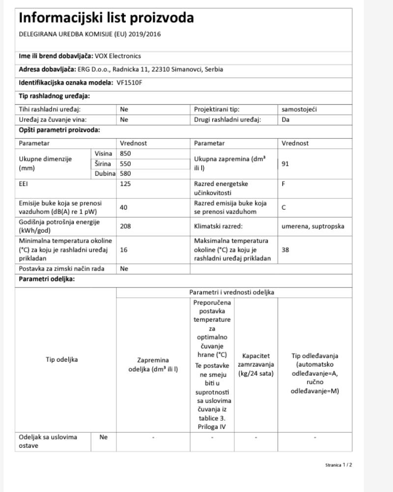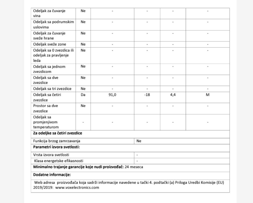 | Kapacitet detalji | Bruto zapremina: 92 l |