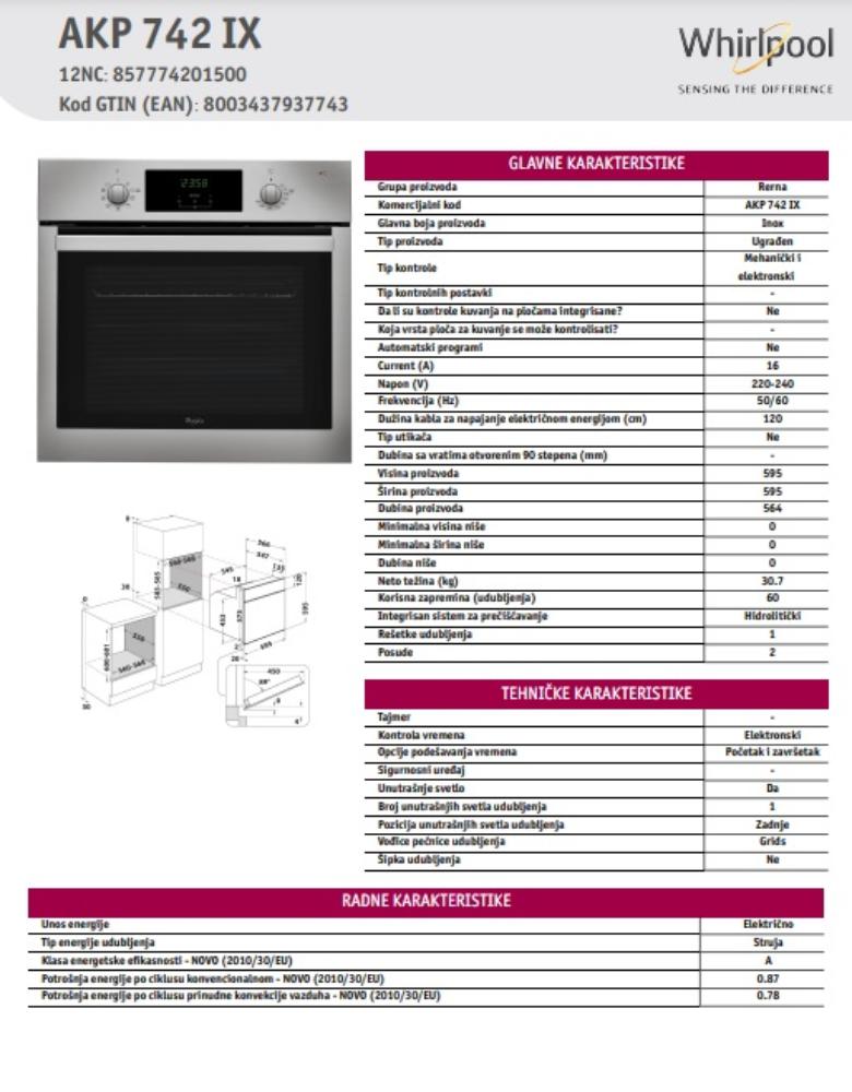 Funkcija toplog vazduha: 0.79 kWh/ciklus