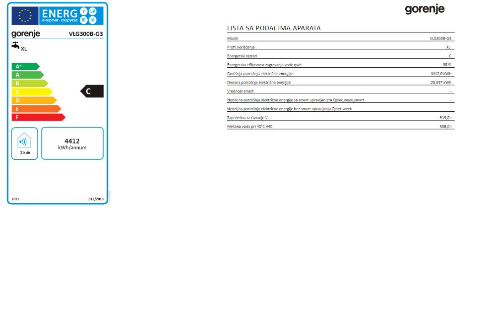 Energetska efikasnost zagrevanja vode nwh: 38 %