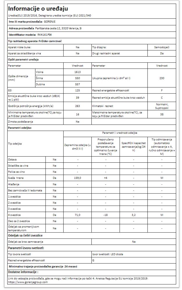 | Uvoznik | GORENJE D.O.O. |
