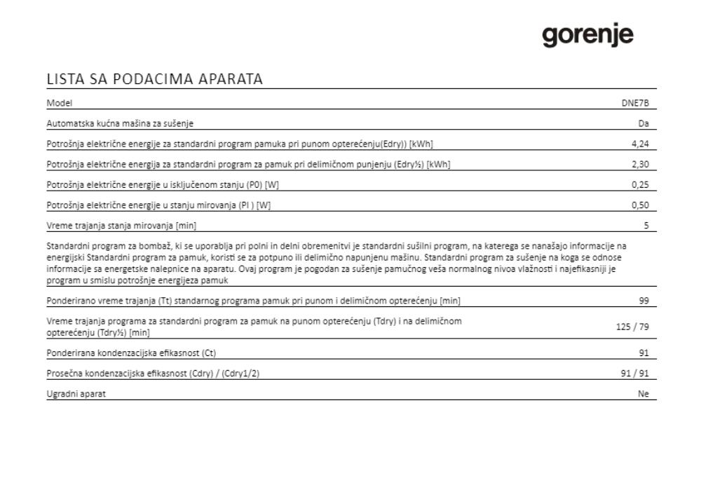 Energetski razred: B, Kapacitet sušenja: 7 kg, Tip konstrukcije: Samostalni, Širina proizvoda: 600 mm, Visina proizvoda: 850 mm