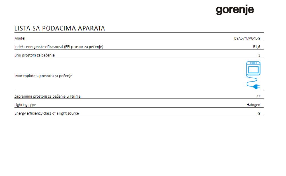 | Višefunkcionalna rerna | 77 l Najveća veličina upotrebljive površine za pečenje |
