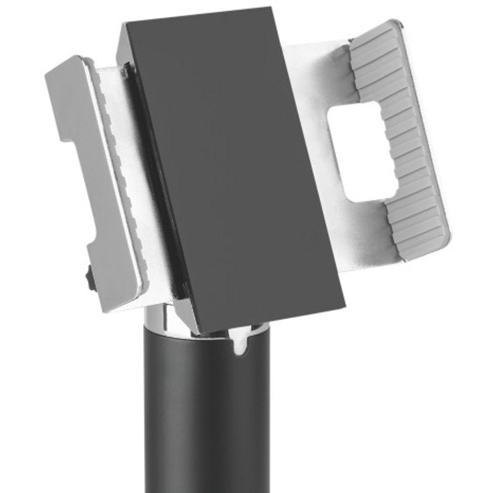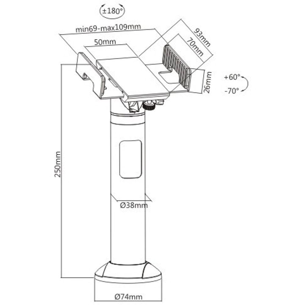 Kettz NPT-K040 nudi podesivu širinu koja prihvata najpopularnije terminale na prodajnim mestima i dovoljno vertikalnih i horizontalnih pomeranja kako bi se zadovoljile sve potrebe kupaca. \nBrzo se postavlja pomoću priložene lepljive trake tipa 3M ili se može trajno instalirati na bilo koju površinu preko izbušene rupe i držača za zavrtanj. \nUnutrašnji skrivač kablova štiti aparat i žice od oštećenja, oštećenja i krađe. \nSPECIFIKACIJE: \nKategorija proizvoda: Stalak za terminal za kreditne kartice \nRang: Premium \nMaterijal: aluminijum, čelik, legura cinka, plastika \nPovršinska obrada: praškasti premaz \nVeličina panela: 93x109mm (3,7"x4,3") \nPrimenljiv uređaj: Univerzalni \nOpseg nagiba: +60°~-70° \nOpseg okretanja: +180°~-180° \nProfil: 250 mm (9,8") \nOrganizator kablova: Da \nBoja: Mat crna