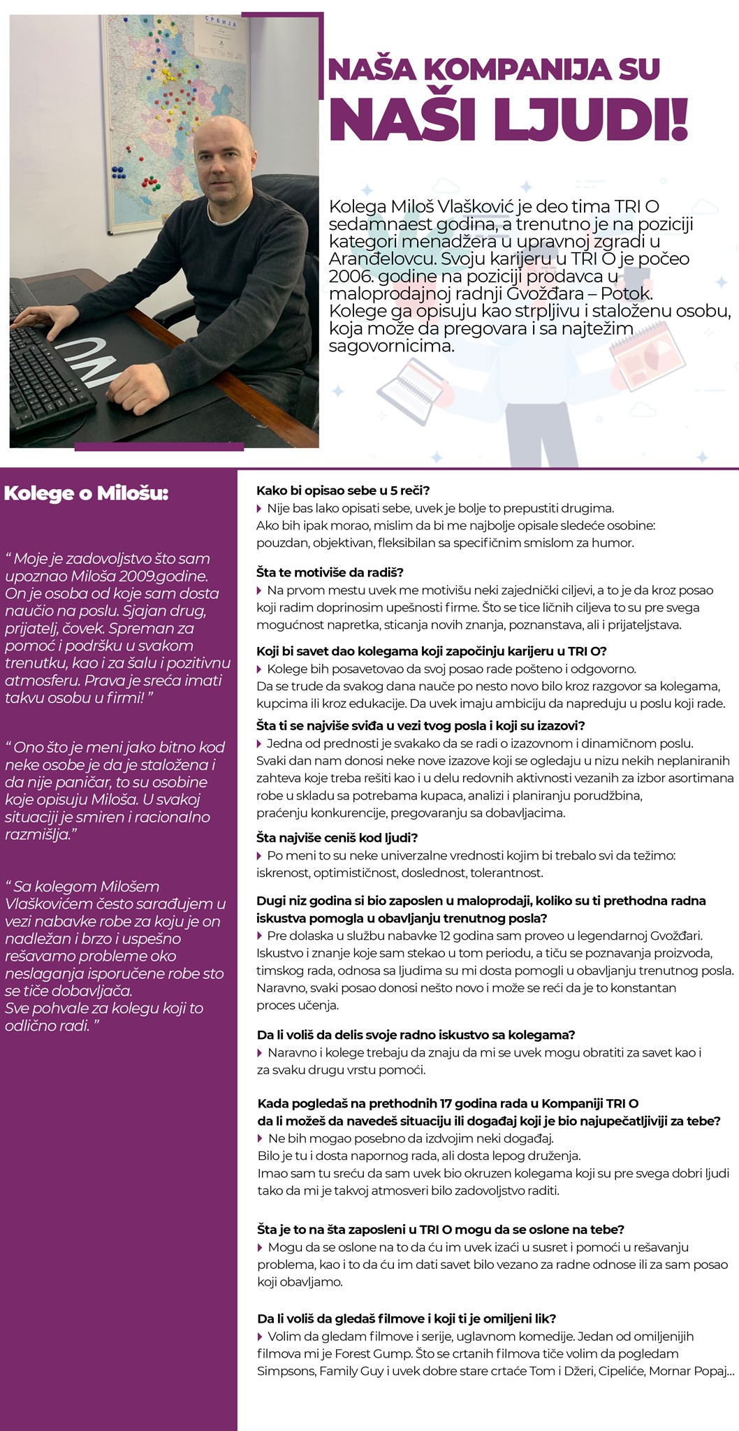 Tri O je prodična kompanija koja se trudi da se i zaposleni osećaju kao deo velike porodice!
